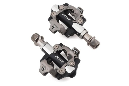 Pedały Shimano XTR PD-M9100 działają w systemie zatrzaskowym SPD. Model dedykowany jest zawodnikom wyścigów XC i Maraton. Cylindryczna powierzchnia styku na dwustronnej konstrukcji bardzo skutecznie odprowadza błoto, dzięki temu pedały przydadzą się w wilgotnych warunkach. Model wyposażono w regulację siły wpięcia i wypięcia, dzięki czemu można go przystosować do własnych wymagań. W komplecie bloki SM-SH51.