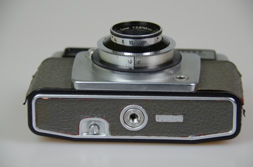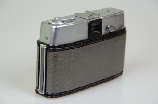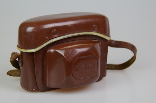 Aparat Ilford Sportsman. Stan jak na zdjęciach. Migawka sprawna, może wymagać regulacji bądź przeczyszczenia. Aparat kolekcjonerski, nie testowany z baterią lub filmem, nie naprawiany, nie czyszczony. Uszkodzony pokrowiec.