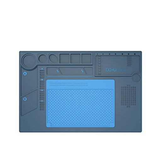 Zestaw składa się z idealnie dopasowanej podkładki silikonowej oraz maty zawierającej specjalne przegrody. Możesz w nich umieścić mi.in podzespoły telefonu, taśmę, akcesoria do lutowania, śrubokręty. Zawiera także siatkę pozycjonującą na śrubki oraz przestrzeń roboczą.