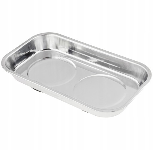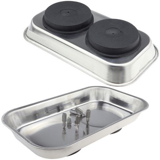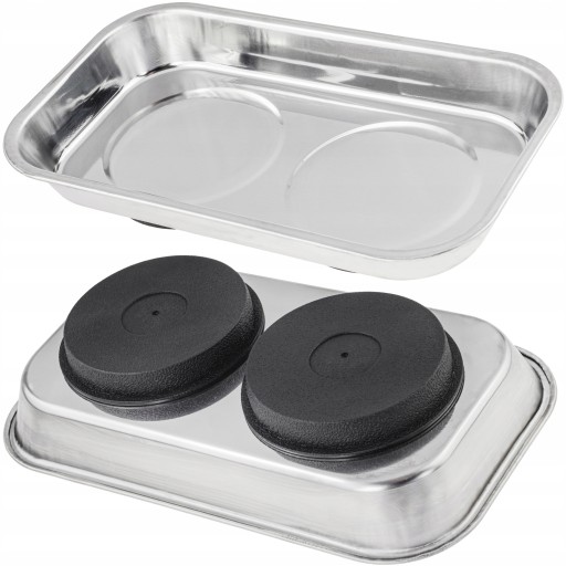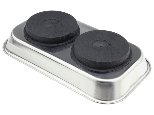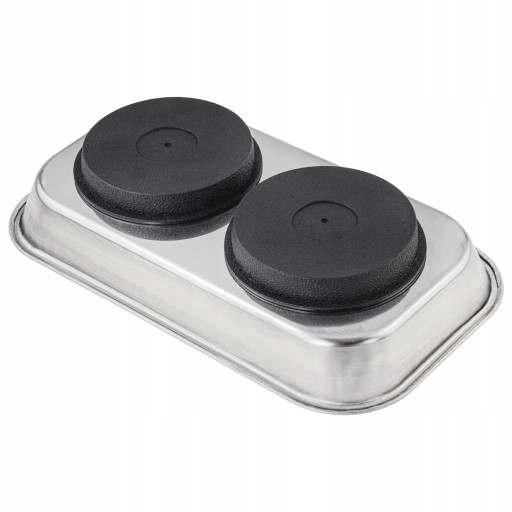 - Miska posiada 2 mocne magnesy, umożliwiające jej pewne przytwierdzenie do powierzchni metalowych, w każdej płaszczyźnie, a nawet do góry dnem