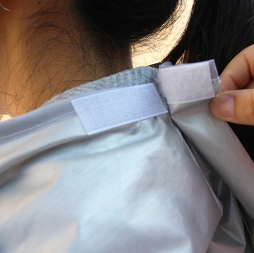 - Zapinany pod szyją na wygodny rzep. Nie krępuje ruchów i nie uciska szyi.