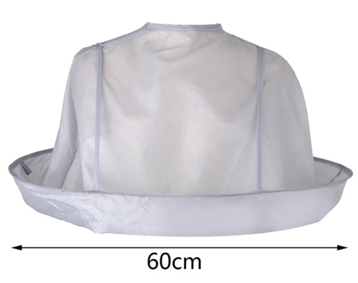 - Ułatwia utrzymanie czystości wokół fotela fryzjerskiego (ścięte włosy opadają do wnętrza kołnierza).