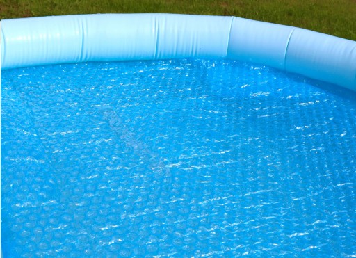 - Bardzo prosty montaż - folię bąbelkową BKS UV wystarczy umieścić na powierzchni wody w basenie. Bardzo łatwo można też ją dociąć nożem by dostosować jej wymiar do basenu.