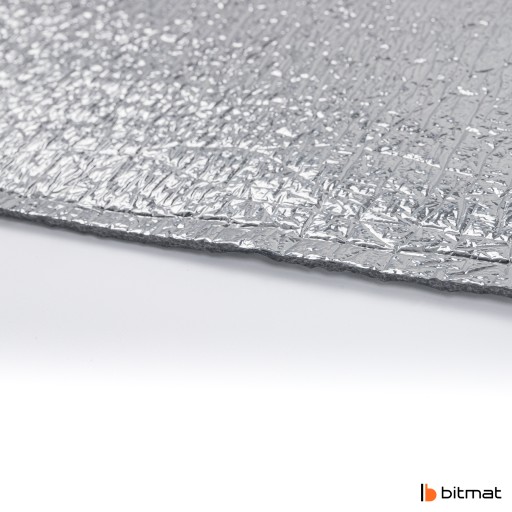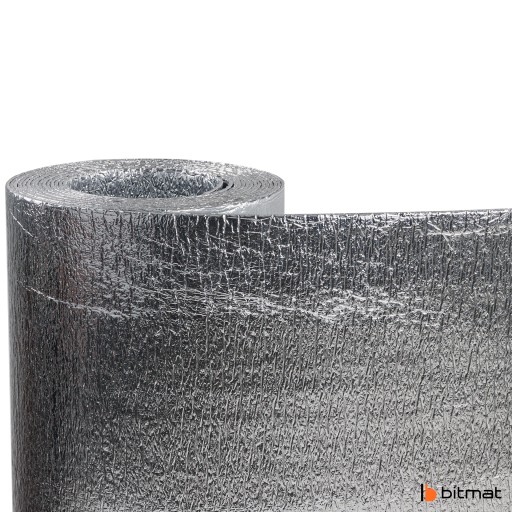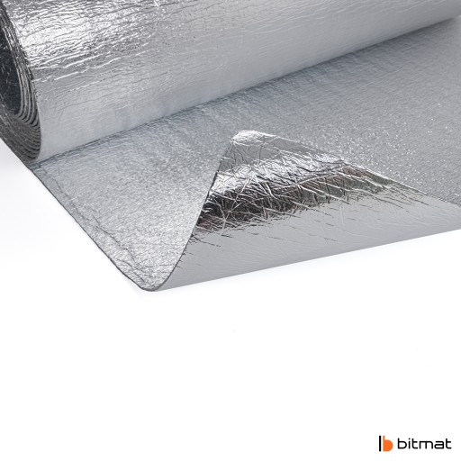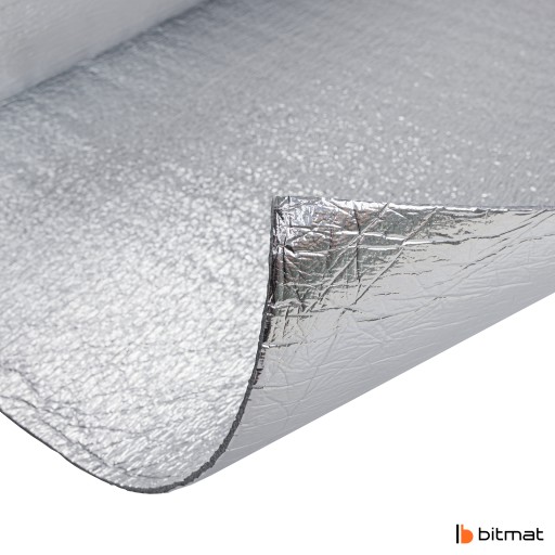 Bitmat PE 2xALU to pianka polietylenowa dwustronnie metalizowana przeznaczona do izolacji termicznej w budownictwie, kamperów oraz każdej powierzchni wymagającej izolacji termicznej. Poza właściwościami izolacji cieplnej pianka także izoluje akustycznie. Pianka polietylenowa słynie ze swojej niskiej lambdy, czyli przewodności ciepła, a tutaj jest wspomagana dodatkowo folią metalizowaną z dwóch stron co daje bardzo dobrą ochronę przed utratą temperatury. Produkt jest łatwy w montażu oraz wyprodukowany w Polsce. Pianka jest także bezpieczna dla zdrowia i odporna na większość chemii.