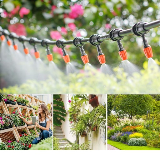 - Zestaw do automatycznego nawadniania mikrokroplowego doskonale nadaje się do chłodzenia basenu i balkonu, ogrodu, trawnika, szklarni, kształtowania krajobrazu, gleby doniczkowej i podlewania gospodarstw rolnych oraz usuwania kurzu.