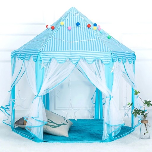 Produkt kształtem przypomina domek - posiada daszek. Namiot jest praktyczny oraz łatwy w montażu. Dzięki lekkiemu stelażowi łatwo przenieść go z miejsca na miejsce.
