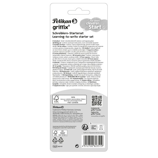 Komplet Griffix zawiera wszystko, czego potrzebuje młody artysta w swojej przygodzie z rysowaniem i pisaniem. Ołówek zaprojektowany przez firmę Pelikan dba o ergonomiczny chwyt i komfort podczas pisania, co ułatwia rozwijanie umiejętności rysunkowych. Temperówka i gumka uczynią prace korekcyjne szybkie i skuteczne. Przygotuj się na kreatywne wyzwania z Griffix Set!