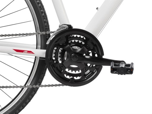 Podstawowy model crossowy w stajni Rometa. Rower, który za sprawą dużych kół, odpowiednio zaprojektowanej ramie i amortyzatorowi przedniemu zapewnia odpowiedni komfort jazdy. Wyboje czy wzniesienia nie są mu straszne, a 21 biegowy napęd Shimano wsparty wyjątkowo łatwą w obsłudze manetką Revoshift sprawia, że jazda jest wyjątkowo płynna i przyjemna. Uzupełnieniem specyfikacji Orkana D Lite są komponenty Romet oraz komfortowe siodełko Vader. Model oferowany jest w 3 wariantach rozmiarowych i 2 kolorystycznych. HAMULEC PRZÓD: Aluminiowy HAMULEC TYŁ: Aluminiowy KASETA/WOLNOBIEG: Wolnobieg (14-28), 7s KIEROWNICA: stalowa 680 mm KOLOR: biały KOLOR SZCZEGÓŁOWY: bialo-fioletowy KOŁA, RAMA: 28 / alu 6061 KORONKI: 28-14T MAKS ROZMIAR OPON: 700x42C MAKS WIELKOŚĆ ZĘBATKI: 48-28T MANETKI PRZÓD: Shimano Revoshift RS-35, 3s MANETKI TYŁ: Shimano Revoshift RS-35, 7s MATERIAŁ RAMY: aluminiowa MECHANIZM KORBOWY: Cyclone CTL-3 328, 48/38/28T, 170/175 mm MOSTEK KIEROWNICY: Aluminiowy 90 mm NAPĘD: 21 biegów OBEJMA PODSIODŁOWA: aluminiowa OBRĘCZE: Aluminiowe dwukomorowe OPONY: 700×42C PEDAŁY: FP-804 PIASTA PRZÓD: Guli stalowa PIASTA TYŁ: Guli PRZERZUTKA PRZÓD: Shimano Tourney FD-TY510 PRZERZUTKA TYŁ: Shimano Altus RD-M310 ROK PRODUKCJI: 2023 ROZMIAR: 19 ROZMIAR KOŁA: 28 SIODŁO: Vader SZTYCA: Aluminiowa 31,6 mm 350 mm TARCZA HAMULCOWA PRZÓD: — TARCZA HAMULCOWA TYŁ: — UŻYTKOWNIK: kobieta WAGA: 14,5 kg WARIANTY - KOLOR: biały; fioletowy WARIANTY - ROZMIAR: 15; 17; 19 WERSJA: Podstawowa WIDELEC: Amortyzowany WKŁAD SUPORTU: kwadrat WSPORNIK SIODŁA: stalowy WYKOŃCZENIE LAKIERU: połysk