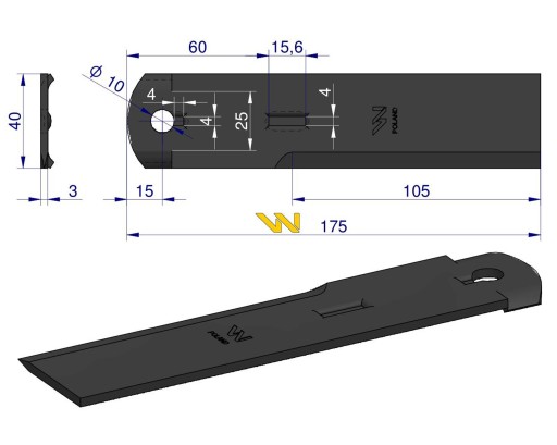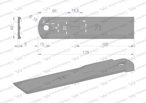 Nóż stały rozdrabniacz słomy sieczkarnia 175x40x3mm otwór 10 zastosowanie 1322233C2 525115 Dronningborg Case MF WARYŃSKI