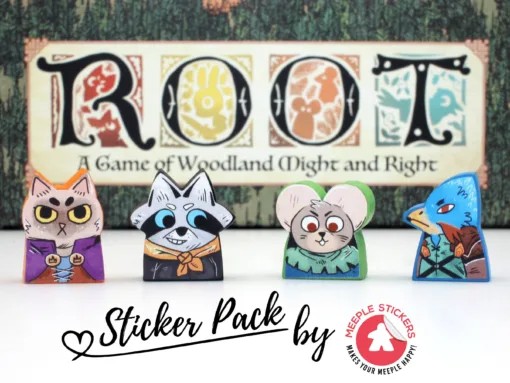 Znudziło ci się patrzenie na swoje drewniane pionki w kolorystyce używanej w każdej z gier na Twojej półce? Spraw aby Twój egzemplarz Root stał się wyjątkowy dzięki zestawowi unikalnych naklejek od Meeple Stickers.