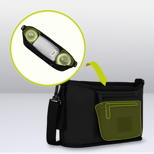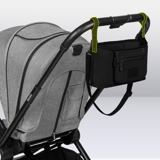 Dzięki niemu wszystkie niezbędne przedmioty masz tuż pod ręką, nawet jeśli nie stoisz w pobliżu wózka. Wygodnie przewieszony przez ramię organizer sprawdza się doskonale na spacerach.