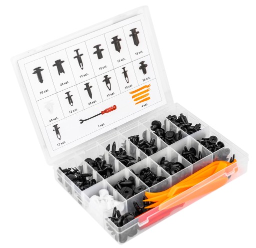 НАБОР АВТОМОБИЛЬНЫХ ЗАЖИМОВ, ЗАЖИМЫ ДЛЯ ОБИВКИ, ШПИЛЬКИ, ЛОЖКИ, ЧЕХОЛЫ, 230 шт.