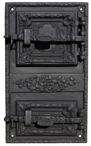 Drzwiczki hermetyczną retro, zdobionymi pięknymi motywami, które posiadają dodatkowe drzwiczki, chroniące przed przegrzaniem i wypadaniem gorącego opału. Drzwiczki nadają się do wędzarni, pieca chlebowego, pieca kaflowego, kuchni itp. Wykonane z wysokiej jakości żeliwa szarego. Odlewy obrabiane i malowane są farbą żaroodporną na 900℃