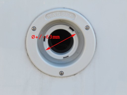 - Adaptery pozwalają na zastosowanie zakrętki do zbiorników z mniejszym korkiem wlewu np. Dethleffs, LMC, TEC produkowanych od 2010 roku (Ø 67 mm) lub innych dostawców stosujących ten sam korek