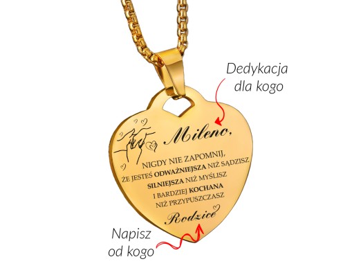Jeśli chcesz, aby zakupiony naszyjnik był spersonalizowany, samemu ułóż treść znajdującą się na sercu.