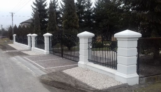 Dzięki temu że elementy, czyli słupy i murki dolne są jednorodną bryłą, montaż jest bardzo szybki i nikomu nie powinien sprawić problemu, w porównaniu np. z elementami modułowymi, gdzie każdy element należy oddzielnie zalewać i spoinować. Wystarczy jedynie wylać miejscowe stopy . Na tych że stopach ustawiamy słupy i murki, zalewając jedynie środek słupka, łączenia należy zasylikonować uszczelniaczem dekarskim, a daszki przykleić na klej mrozoodporny