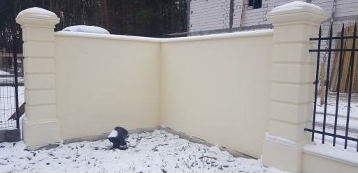 Dzięki temu że elementy, czyli słupy i murki dolne są jednorodną bryłą, montaż jest bardzo szybki i nikomu nie powinien sprawić problemu, w porównaniu np. z elementami modułowymi, gdzie każdy element należy oddzielnie zalewać i spoinować. Wystarczy jedynie wylać miejscowe stopy . Na tych że stopach ustawiamy słupy i murki, zalewając jedynie środek słupka, łączenia należy zasylikonować uszczelniaczem dekarskim, a daszki przykleić na klej mrozoodporny