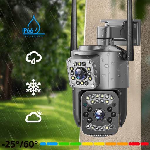 ⚡2w1! Zewnętrzna kamera WiFi statyczno-obrotowa z dwoma obiektywami w kolorze grafitowym: jakość nagrań w rozdzielczości 4Mpx⚡