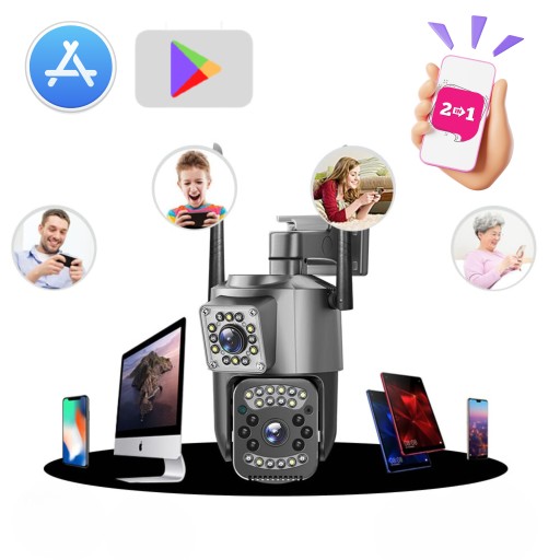 ДВОЙНАЯ WIFI IP-КАМЕРА НАРУЖНАЯ ПОВОРОТНАЯ 2K СЛЕЖЕНИЕ 4MPX ОСВЕЩЕНИЕ