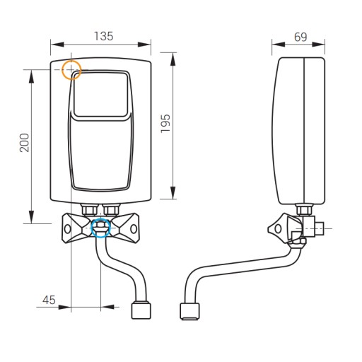 Elektryczny przepływowy podgrzewacz wody EPS2-5,5kW TWISTER umywalkowy