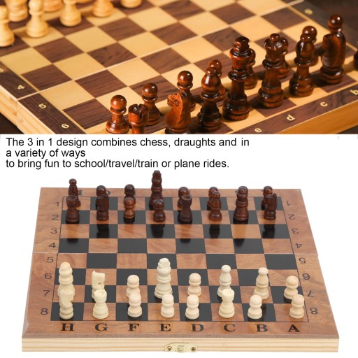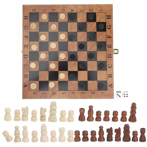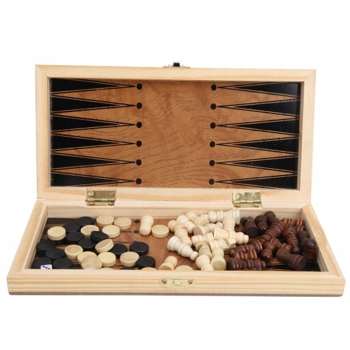 . Drewniane pudełko Szachy Szachownica Warcaby 3 w