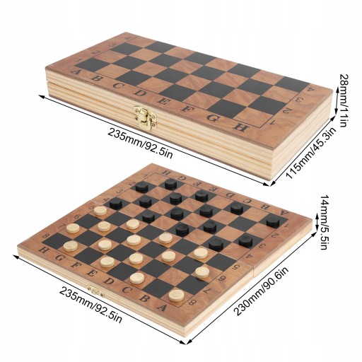 Składany rozmiar szachownicy: ok. 235x115x28mm/9,3x4,5x1,1 cala