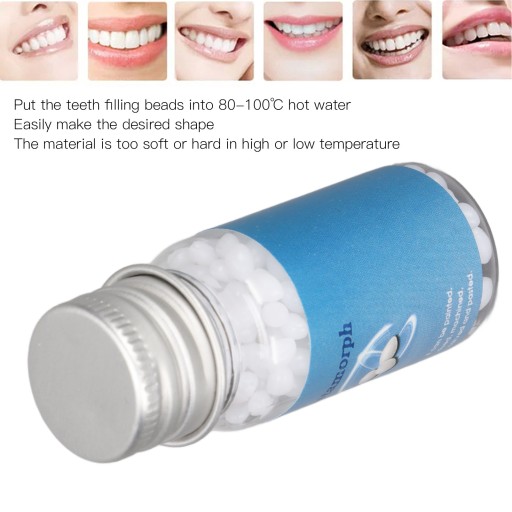 4. Sposób użycia: Włóż koraliki wypełniające zęby do gorącej wody o temperaturze 80-100 ℃, dzięki czemu możesz łatwo uzyskać pożądany kształt, materiał jest zbyt miękki lub twardy w wysokiej lub niskiej temperaturze, niełatwy do uformowania.