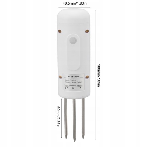 Specyfikacja: Typ artykułu: Tester gleby Materiał: ABS Waga: ok. 144 g/5,08 uncji Rozmiar czujnika: 180x46.5mm/7.09x1.83in Długość sondy: 60mm/2,36 cala Rodzaj zasilania: bateria 2xAA (bez baterii) Zakres pomiaru wilgoci: 0-100% Dokładność pomiaru wilgotności: 0-50% (± 3%), 50-100% (± 5%) Zakres pomiaru temperatury: - 20 ℃ - 60 ℃ Dokładność temperatury: ± 1 ℃ Czas odpowiedzi danych aplikacji: 60 sekund Stopień ochrony: IP67 Lista pakietów: 1 x Tester gleby 1 x Instrukcja
