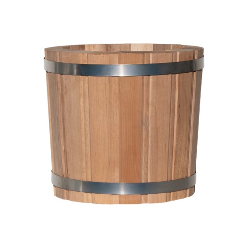Wiaderko zostało wykonane z drewna olchowego, które zapewnia naturalny wygląd i trwałość. Wiaderko ręcznie zabezpieczyliśmy wybranym impregnatem, który jest dostępny w wielu kolorach, co pozwala dopasować je do swojego wnętrza lub ogrodu. Wiaderko wyróżnia się solidnym dopasowaniem klepek, zapewniając trwałość i odporność na różne warunki pogodowe. Dzięki temu będzie służyć przez wiele sezonów, utrzymując swój pierwotny wygląd. Opaski wiaderka, połączone nitami, zostały wykonane ze stali nierdzewnej. Daje to możliwość doszczelnienia wiaderka w przypadku używania go jako narzędzia do noszenia wody.