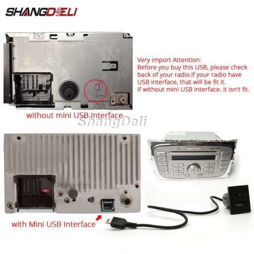 Interfejs:USB2.0Napięcie:12 vNazwa marki:ShangDeLiPochodzenie:CN (pochodzenie)Typ artykułu:Kable Adaptery i gniazdaMaterial Type:PlasticSpecial Features:USB flash Drive playing musicVehicle model::for ford focus 2 mk2 2009 2010 2011Features:USB flash Drive playing musicWire Length ::46cm / 18inchNote 1:AUX function cannot be used.No AUX CableFunction:can only be used to listen to musicNote 2:can not to charge mobile phone