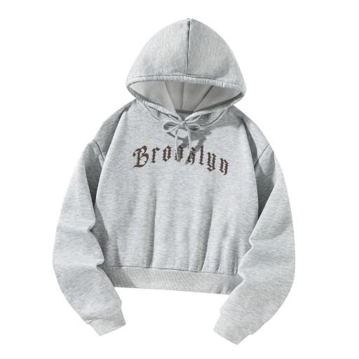[Bluza na co dzień] Damska bluza z kapturem ze sznurkiem i nadrukiem w litery jest z kapturem, wszechstronna i swobodna.