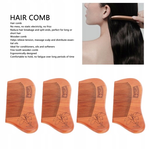 . 4 szt. Drewniany grzebień do włosów zapobiega