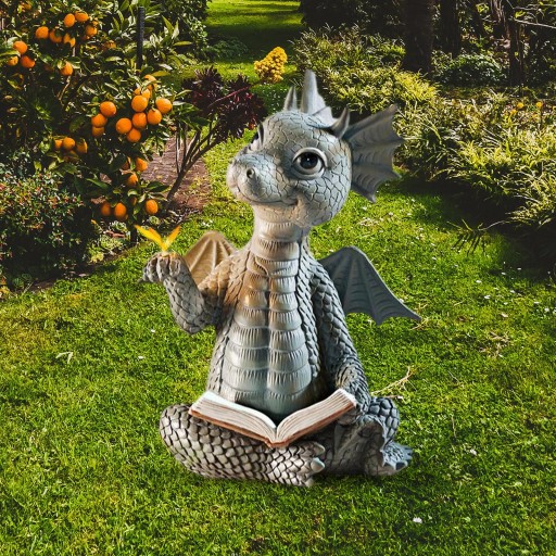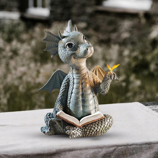 Ten mały smok czyta książkę Statua wykonana jest z żywicy, kamiennej powierzchni, dekoracji w stylu vintage.