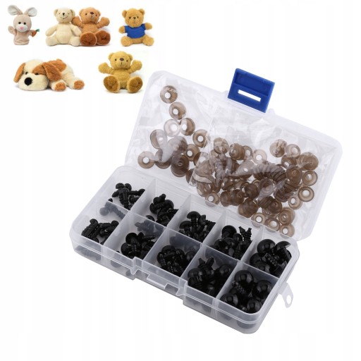 - 1 pudełko (100 sztuk) x Zabawkowe oczy z uszczelkami