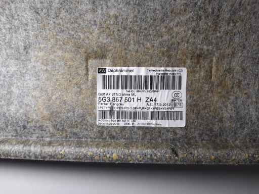 VW GOLF VII 3D 3-дверный 2014 ЯРКИЙ ПОТОЛОК 5G3867501H ОТЛИЧНОЕ СОСТОЯНИЕ