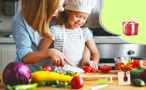 【Trening umiejętności dla dzieci】 Nasz zestaw noży dla dzieci został specjalnie zaprojektowany dla małych dzieci, które mogą gotować z mamą w kuchni, co pozwala im bardziej zaangażować się w dom, poprawiając jednocześnie relacje rodzic-dziecko i ćwicząc zmysł wzroku dziecka koordynację i umiejętności praktyczne.