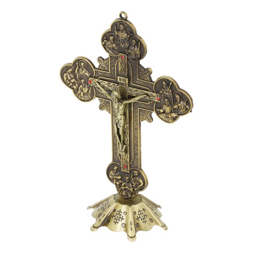 Krucyfiks z brązu stabilna podstawa inkrustowana w czerwonym stylu vintage atrakcyjna dekoracyjna metalowa dekoracja stołu na prezent katolicki