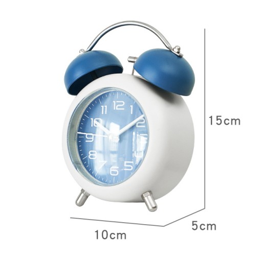 Mechaniczny metalowy budzik dla dzieci Ciche nocne światło niebieski