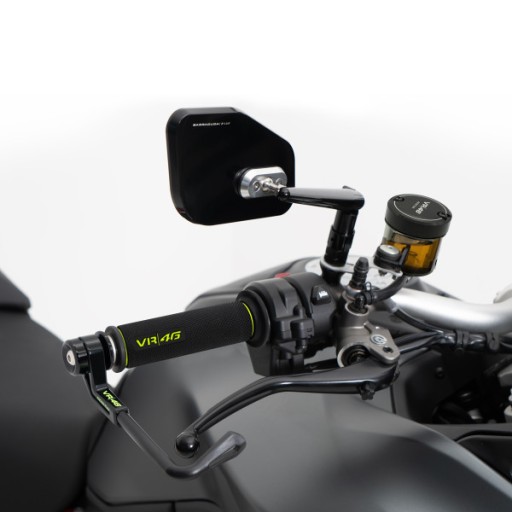 - Zbiornik na płyn VR46 wykonany jest ze specjalnego tworzywa sztucznego w ciemnym przydymionym kolorze i wyposażony jest w aluminiowy korek wykonany metodą CNC z litego materiału z logo VR|46