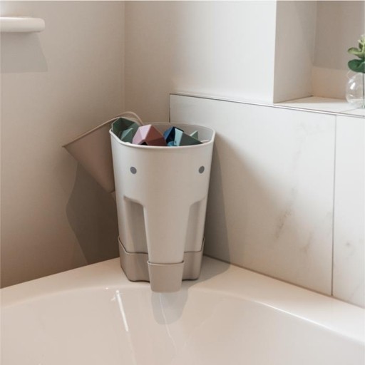 Ten przemyślany, ekologiczny pojemnik na zabawki do wanny, wykonany jest w 98% z plastiku pochodzącego z recyklingu. Pojemny i wygodny w użytkowaniu sprawi, że wszystkie zabawki kąpielowe będą suche i starannie przechowywane, aż do następnej kąpieli malucha. Wystarczy zebrać, odcedzić, wysuszyć i przechowywać.