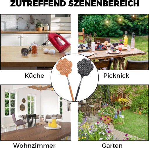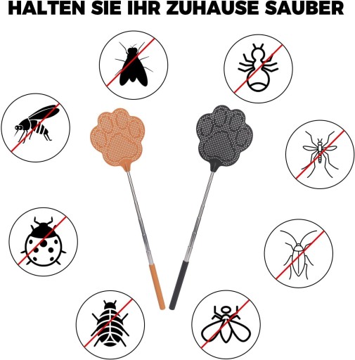 ① Klapka na muchy, 2 sztuki, wyciągana, z wbudowanym skrobakiem na komary, do odstraszania much, os, komarów i innych owadów (czarna, brązowa)②Wysokiej jakości materiał - łapka na muchy jest wykonana ze stali nierdzewnej o teleskopowej metalowej strukturze, a drążek teleskopowy nie jest łatwy do złamania. Wytrzymała i trwała pałeczka z tworzywa sztucznego, która nie pęka łatwo po dłuższym użytkowaniu.③[Właściwości] Uchwyt jest miękki i wygodny, rozmiar nadaje się do trzymania jedną ręką, falista antypoślizgowa konstrukcja, kształt pazura kota, słodki i interesujący, powierzchnia uderzenia wykonana jest z miękkiego tworzywa sztucznego 11 × 11 cm, długoś? drążka teleskopowego po skurczeniu wynosi 27 cm, a prosta wysokoś? wynosi 63 cm.④[?atwa obsługa] Przedłużony drążek teleskopowy ułatwia trafienie szybko poruszających się celów, takich jak komary, muchy, pająki, pluskwy, mole, osy, grillowanie, szerszenie i różne złe owady.⑤【?atwe zawieszenie】Ta łapka na muchy jest stosunkowo kompaktowa po skurczeniu, idealna do salonu, kuchni, sali lekcyjnej, sypialni i na zewnątrz. Można go łatwo zawiesi? na haku garderoby lub na ścianie, nie zajmując dużo miejsca.