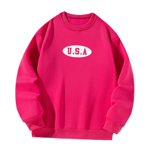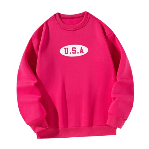 [Modna bluza] Bluza w kolorze różowo-czerwonym ma nadruk literowy, jest nowatorska i kreatywna, wszechstronna i swobodna.