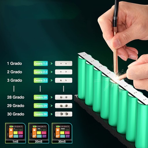 W przeciwieństwie do większości zgrzewarek punktowych dostępnych na rynku, nasza mini lutownica obsługuje grubość 0,1-0,15 mm. Urządzenie jest małe, ale w pełni funkcjonalne, aby spełnić różne wymagania związane z produkcją baterii. (Uwaga: Po otrzymaniu produktu należy go naładować i przećwiczyć kilka razy, aby znaleźć odpowiednią moc spawania).