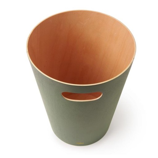 Kosz Woodrow marki Umbra w kolorze khaki to wielofunkcyjna propozycja. Może pełnić rolę kosza na papiery w biurze lub gabinecie, a także być używany jako pojemnik na zabawki czy klocki.