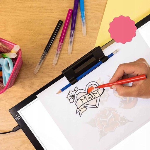 Produkt jest bardzo lekki, a jego grubość wynosi około 5 mm. W połączeniu z twardym akrylowym wykończeniem bardzo przyjemnie się nim operuje. Rysunki można wykonywać np. siedząc czy opierając tablicę na kolanach. Twarda powierzchnia pozwala również przymocować rysunki do deski za pomocą klamerek zaciskowych. Wbudowane diody LED generują bezpieczne dla oka oświetlenie, dzięki czemu oczy nie będą się tak męczyć podczas wykonywania rysunku.
