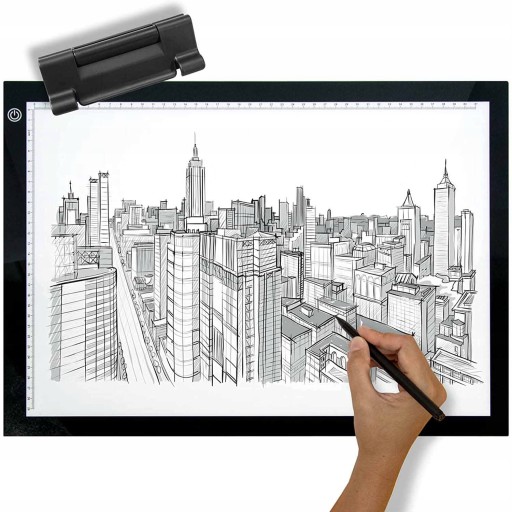 Profesjonalna podświetlana deska kreślarska przeznaczona do sporządzania szkiców oraz rysunków na kalkach i papierze. Dzięki bardzo dobremu podświetleniu LED o natężeniu 300-350 lm arkusz z danym obrazem, który chcemy odrysować prześwietli się na kartkę papieru. Zaleca się aby kartka papieru na którą nanosimy rysunek, nie przekraczała gramatury 200g/m2. W celu polepszenia efektu można przyciemnić światło w pomieszczeniu