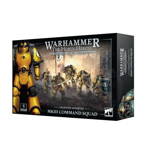 Legion Command Squads are selected from the most worthy and trusted veterans of the Legiones Astartes. These chosen warriors have access to their Legion's finest wargear – such as fine, artificer-wrought suits of MKIII 'Iron' armour, renowned for its bulky but durable design – and accompany their commanders to war as bodyguards and adjutants, carrying one of their Legion’s great standards as a rallying point on the battlefield for Space Marine troops.