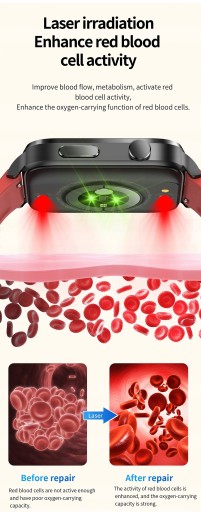 Zegarek posiada również innowacyjną funkcję fizjoterapii laserowej,