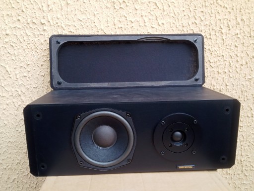 Solidna i dobrze grająca Kolumna centralna : HANS DEUTSCH light-style Center do kina domowego . 8 Ohm , 60 Watt. Zawieszenie od głośnika nisko tonowego może wymagać regeneracji ! .