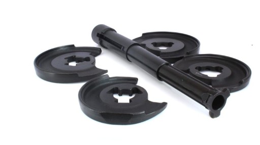 Zestaw wyposażony jest w 2 pary wymiennych krążków z 3-hakowym systemem zabezpieczeń. Dokręcanie ściągacza jest możliwe przy użyciu 6-kątnego klucza 19 mm.